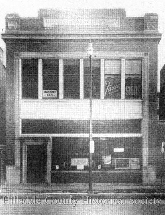 With Fred A. Roethlisberger as president, Corvis M. Barre as vice president and Paul W. Chase as cashier, the First State Savings Bank first opened for business on June 16, 1902. The original bank building was just two doors down from the corner building renovated for bank purposes in 1922 and which opened in January 1923. On February 14, 1933 the state declared a "Bank Holiday," closing all state banks. On September 11, 1933, the HIllsdale Savings Bank and the First State Savings Bank merged, reopening as the Hillsdale State Savings Banks in the corner building.