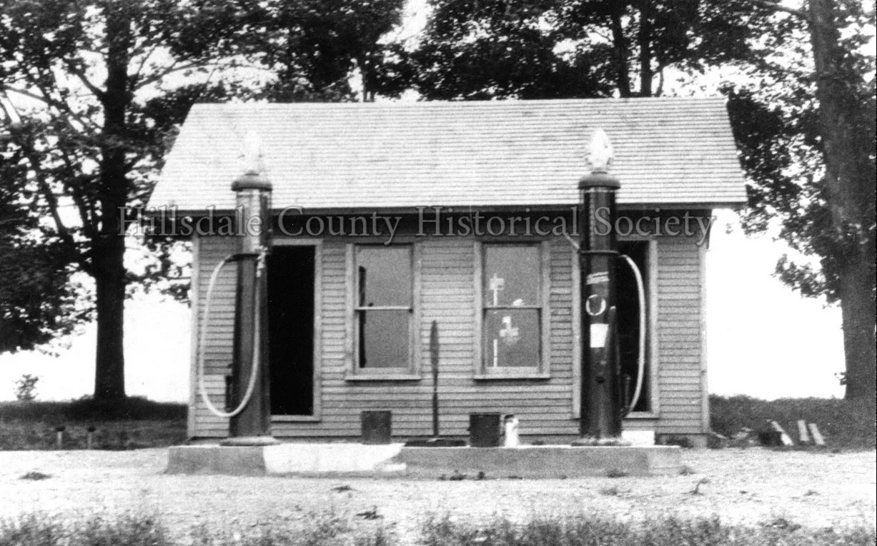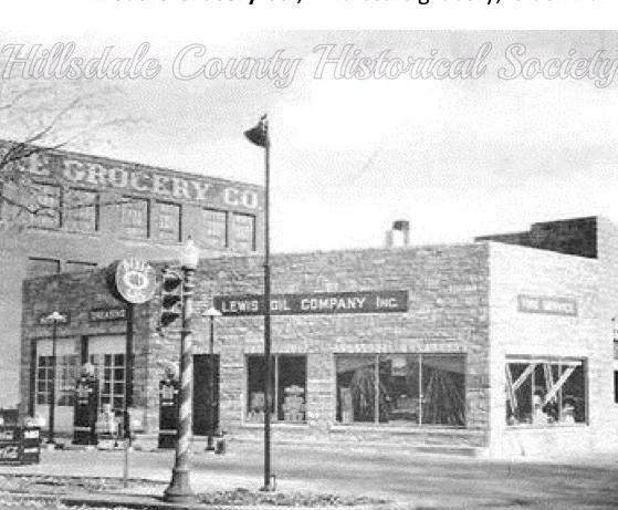Lewis Oil Company, on the corner of Hillsdale street and carleton road in 1938, selling dixie oils and gasoline
