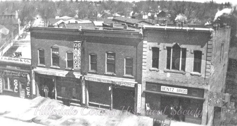 Bentz Brothers Garage on Broad Street in Hillsdale, with G.A. Aldrich & Co. to the north